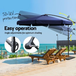 Soak up the sun, while staying cool under our Instahut side post umbrella. Its robust steel frame supports an octagonal UV50+ canopy, ideal for the peak of summer. Made of water-resistant and wear-resistant polyester, it stands up to all sunny adventures. A water-fillable, portable base ensures beach-to-backyard versatility, while the washable canopy ensures freshness. Sunshine and shade, harmoniously blended for your summer escapades.
