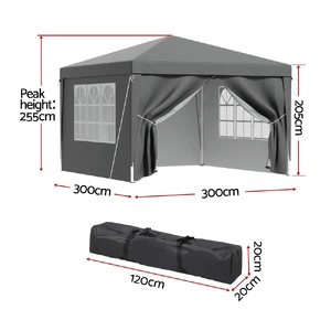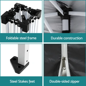 The Instahut Pop Up Gazebo Vendor Tent is the perfect portable item for outdoor adventures, and activities. Featuring a quick and easy setup, durable weather-resistant construction, and 3 adjustable height, this versatile canopy provides reliable shade and protection wherever you need it - from the beach to the backyard. You can enjoy your holiday while the compact folding design with the spacious 3x3m coverage. Crafted with premium materials and built to withstand the elements, the Instahut Pop Up Gazebo Tent is a must-have companion for family camping trips, vendor stalls, school functions.