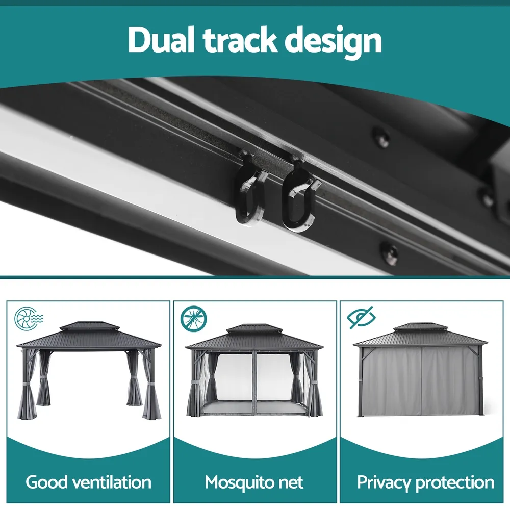 Built tough with a Galvanized Steel Double Roof for extra strength overhead and a lightweight yet robust Powder-coated Aluminum Frame that stands up to the elements. The UV-resistant and water resistant polyester top provides essential protection from our harsh sun and unexpected showers. Enjoy the outdoors without the bugs! Features mosquito and fly-proof mesh walls with practical removable netting and curtains. Adjust your shade and privacy easily thanks to the double-side zipper and secure hook and loop attachments. Designed for convenience and stability: Use the different shaped hooks for hanging lanterns or gear. The smart triangular structure enhances stability, and the included anchoring stand gives you peace of mind on breezy days.