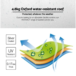 eaturing high density, long lasting PU coating oxford fabric with effective UV and water repellent treatments, this INSTAHUT 4.5x3 Pop Up Gazebo provides a lovely ground and canopy coverage of 450 x 300cm. It is perfect for all your upcoming outdoor activities, as a sunshade station as well as a shelter for unexpected rains.