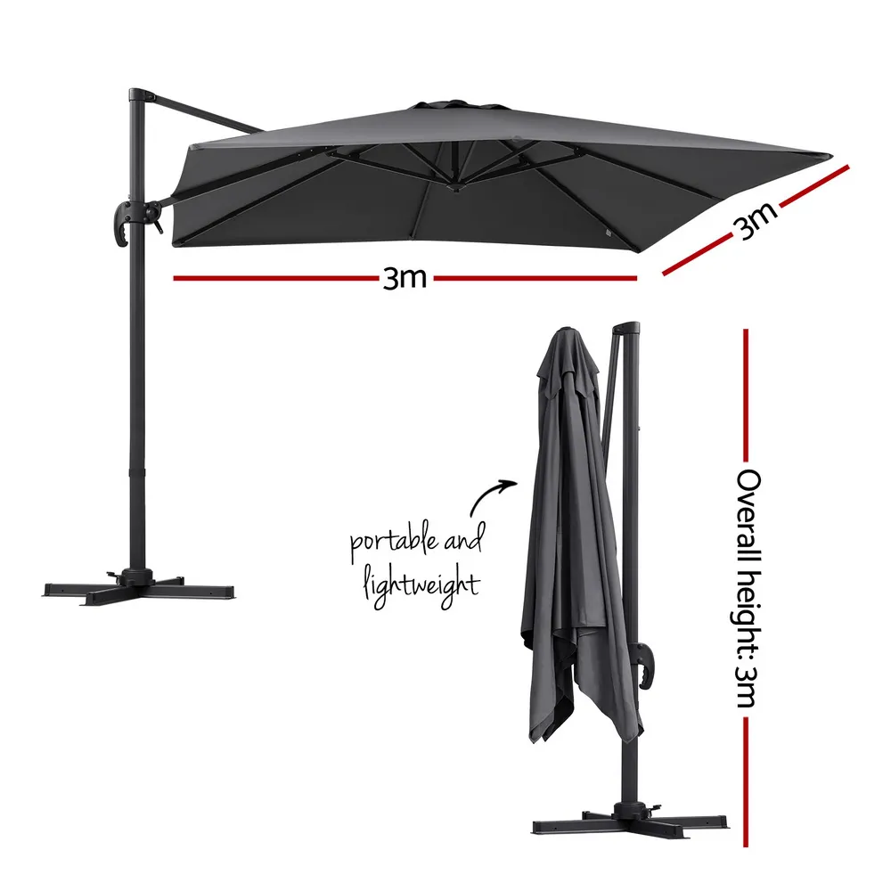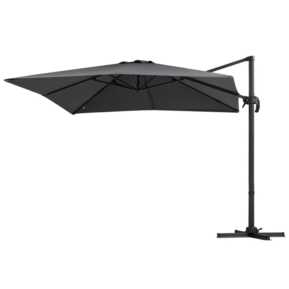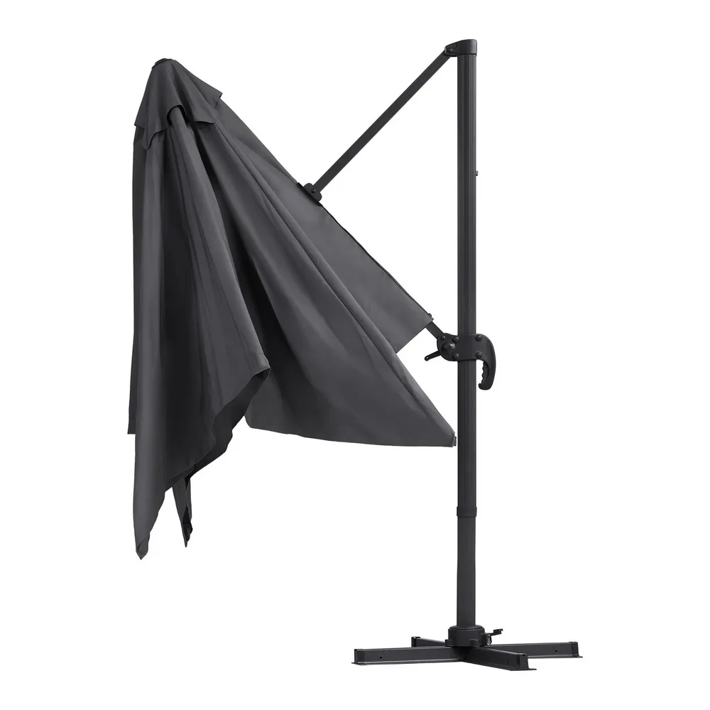 With a 5-position tilt function, you can easily adapt to the sun's angle, and the steel base provides added durability. The user-friendly crank system makes opening and closing effortless. The charcoal-coloured 250gsm polyester canopy is paired with a sleek black aluminium frame, offering a stylish and modern look. Measuring 3m in diameter, this gazebo provides ample shade for family and friends.