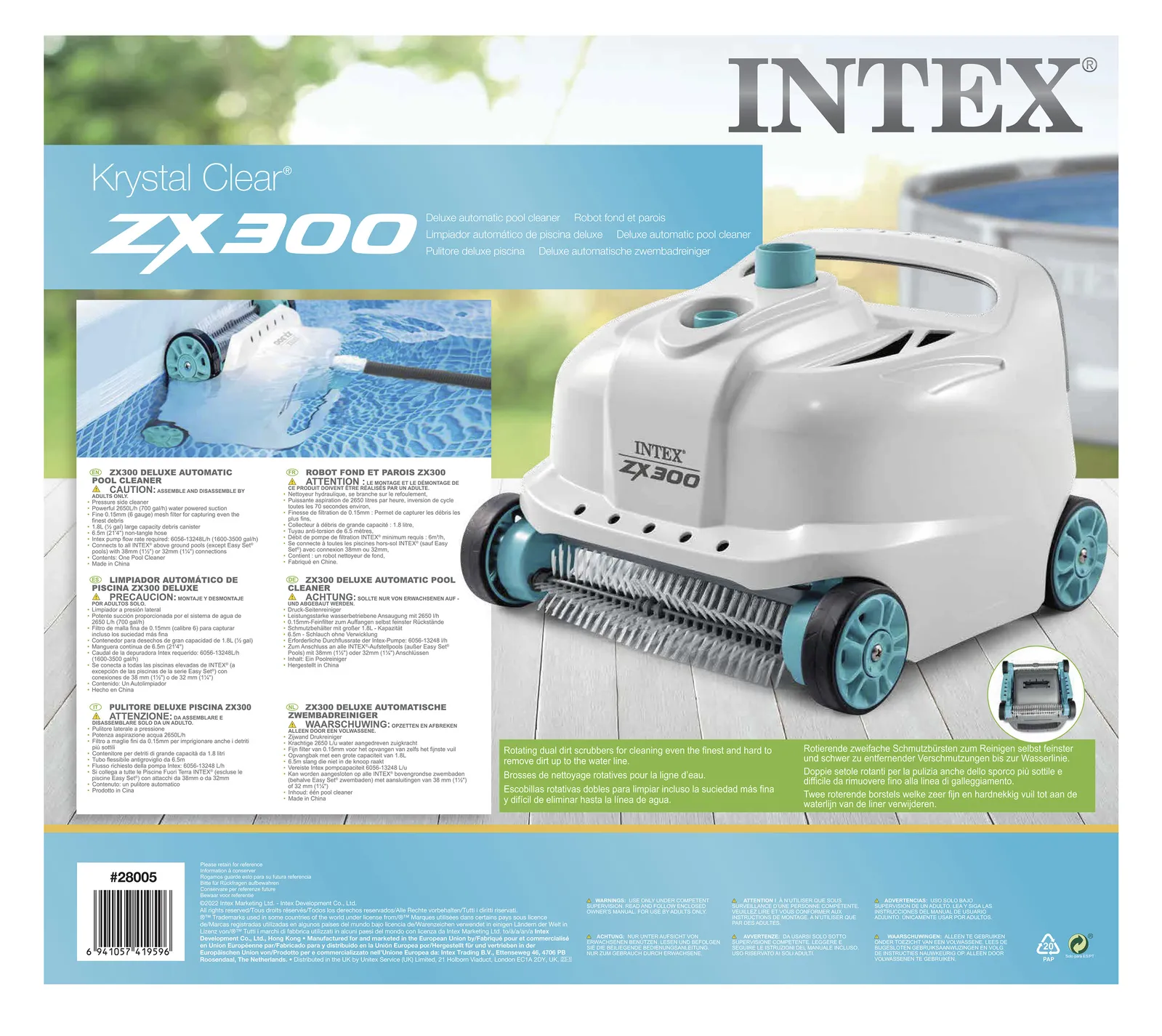 - Rotating dual dirt scrubbers for cleaning even the finest and hard to remove dirt up to the water line