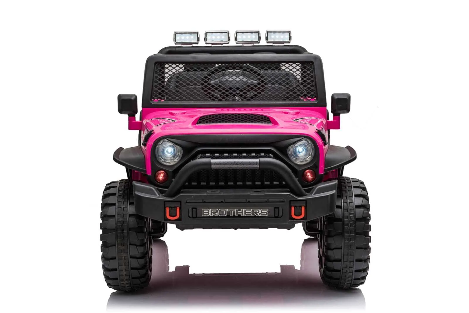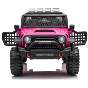 Jeep Inspired kids Car is a brand new model and has all the fun features that a ride on car should have. Seat Space for two kids This model is upgraded with features such as, Soft EVA wheels and mp3 player with Bluetooth connectivity. With realistic shape, beautiful lights and openable doors this car will be true source of joy and fun for your little one. If your child is not ready to get behind the wheel then do not worry as this model comes with a wireless remote control which lets you take the lead when required. Features Colour: Pink Mp3 player with Bluetooth connectivity, USB Socket, SD Card Comfortable Seat made with Soft Material Seat belt Realistic Lights in front and back Rocking function Button start function Openable doors. High speed and low speed mode on the dash 2.4G Remote Control With ability to override the car using stop button All wheels suspension system Soft EVA Wheels SAA-approved battery charger Suitable for children 3 years and above Reverse and Forward function through gear stick User: 3 7 years old Specifications: Control mode: Manual/ Remote Colour : Pink Motor: 90W (2 x 45W) Battery: 12V 7AH Speed: 3-7km/h, depending on weight and surface Mode: High speed/ Low speed Operating time: Up to 2 hours per full charge Seat belt: Adjustable User: 3 8 years old Weight capacity 50kg Product Size: 118cm x 78cm x 77cm | 19.5Kg Box Size: 127cm x 66cm x 39 | 25Kg