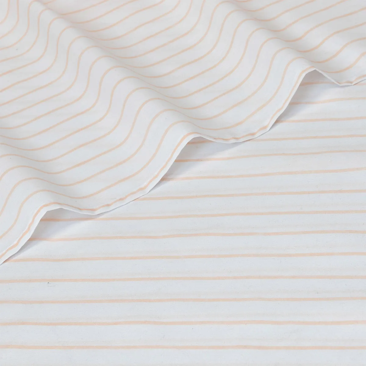This Striped Polyester Cotton Sheet Set Watermelon by Jelly Bean Kids is a refreshing take on classic sheets brings a playful watermelon colour together with timeless stripes printed in white and coral colour tones. It is made from soft touch and quality Polyester Cotton blend fabric.