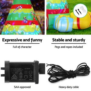 Add festive charm to your home with our Jingle Jolly Christmas Inflatable. Crafted with water-repellent and UV-resistant materials, it is perfect for indoor and outdoor use. The built-in air blower ensures effortless inflation. For quick storage, simply unzip and deflate. Pegs and ropes are also included for secure ground anchoring, bringing you peace of mind. Create a magical holiday display effortlessly with this delightful inflatable centerpiece!
