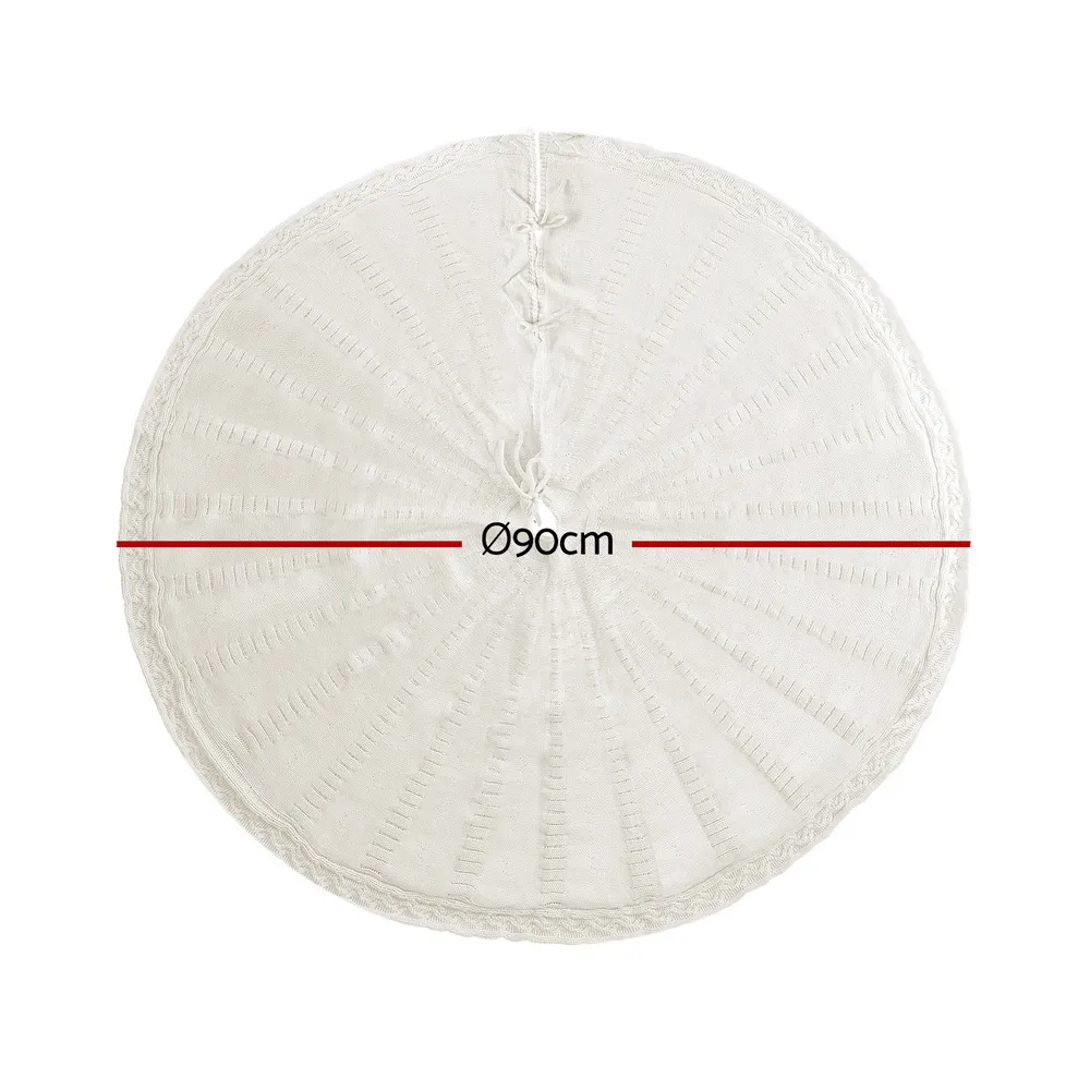 Enhance your holiday display with the Jingle Jollys Knitted Christmas Tree Skirt. Crafted from soft knitted fabric in sophisticated beige, this skirt features built-in bow-knot straps for secure placement. Select 90cm or 120cm sizes to complement your tree. Ideal for living rooms or hallways, it instantly elevates festive decor with zero assembly needed. Machine washable for effortless maintenance.