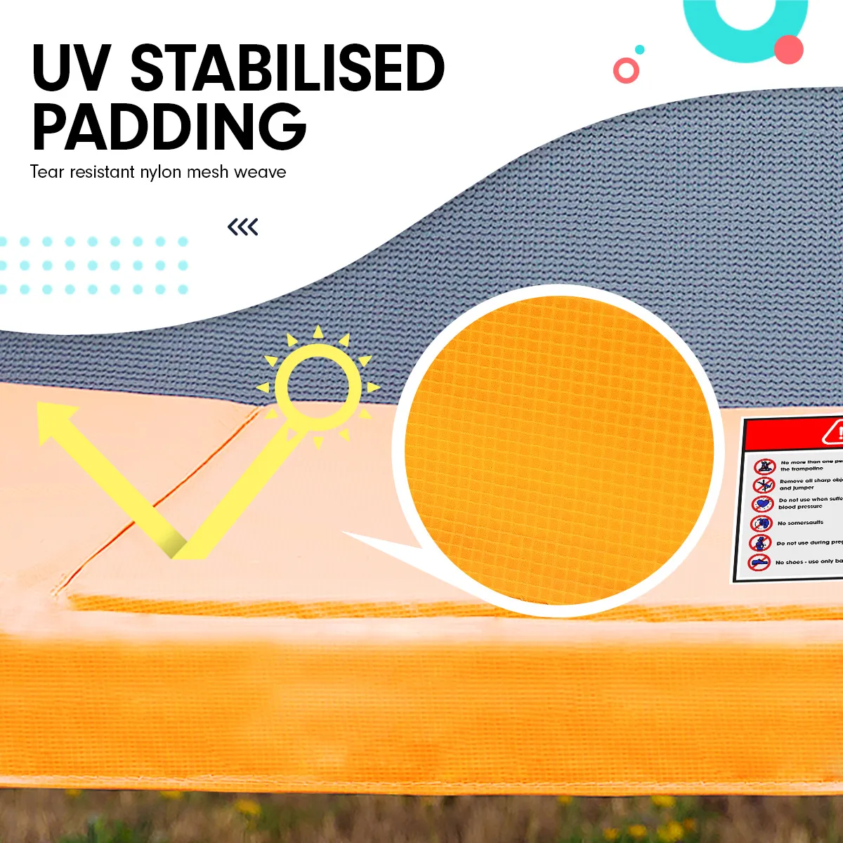 The padding cover of the trampoline is UV stabilised and has embedded nylon mesh, ensuring the padding will last under the harsh Australian sun.