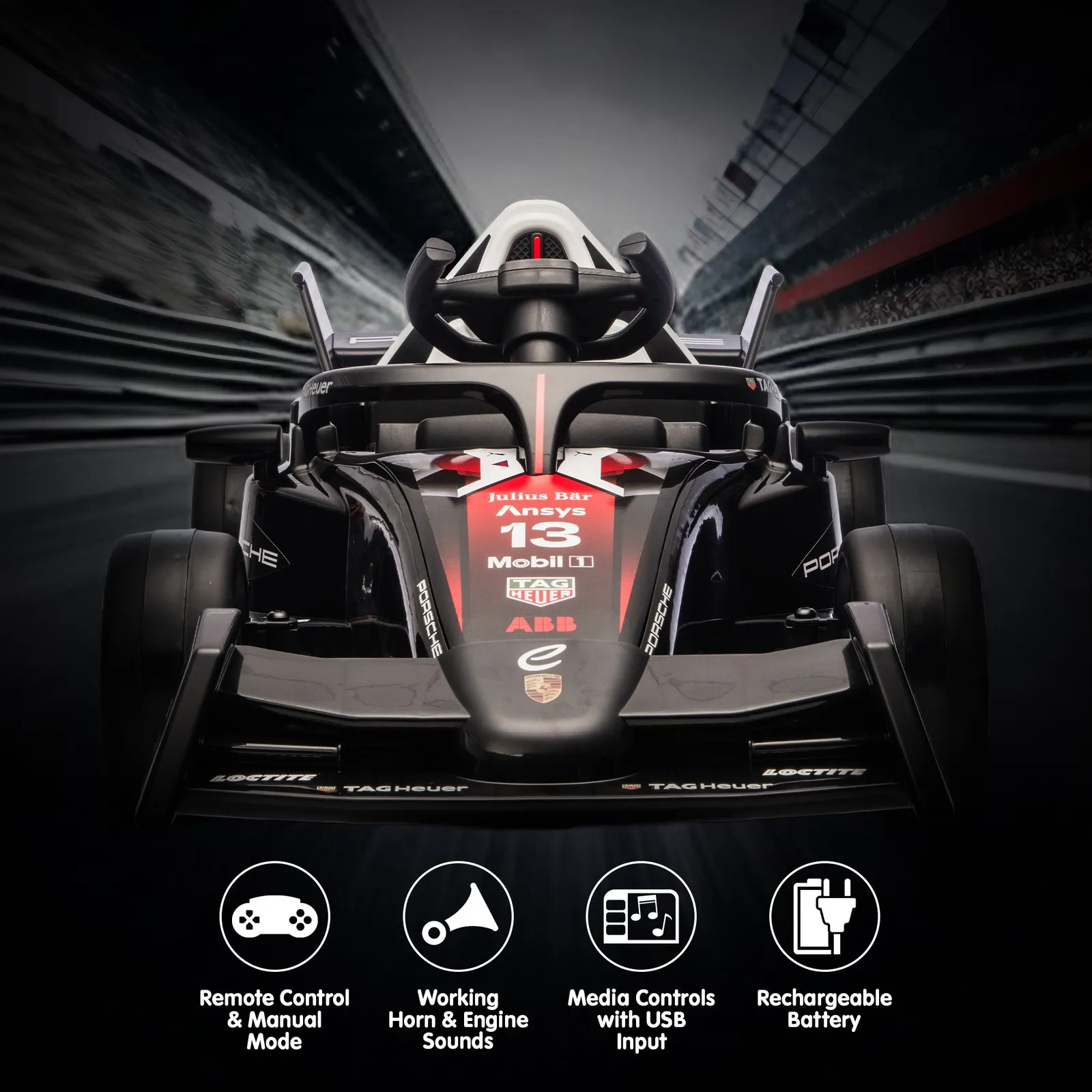- 1 x Porsche Formula E Ride On Race Car