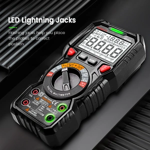 - EASY OPERATION - Switch the dial to the function you need, and the LED lights on the jacks will shine accordingly. To plug in the leads is easy. Autoranging saves you the hassle of having to know which range of value. Large 2.9 LCD backlight display, easy-to-read digits offer a 6000-count resolution.