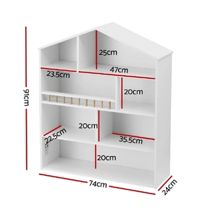The Keezi 4-Tier Kids Bookshelf combines playful design with practical storage, featuring a charming house-shaped silhouette that adds character to any child's room. Its 4-tier open shelves with three vertical compartments provide ample space for organising books, toys, and display items while keeping everything within easy reach for little ones.