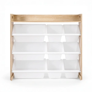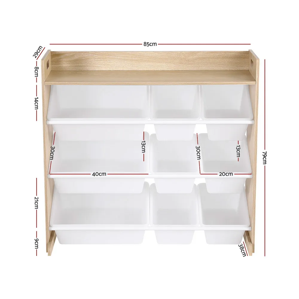 The Keezi Kids Toy Box Organiser brings cheerful organisation to any child's space with its practical 9-bin storage system. Featuring both large and small removable bins arranged across 3 tiers, an open shelf to display and storage, this unit makes tidy-up time fun and accessible for little hands. The child-safe design includes smooth rounded edges, comfortable handles and anti-tip protection, while the white and wooden finish complements most room décors. Perfect for storing toys, books, art supplies and more, this organiser helps develop good habits while keeping belongings neat and accessible.