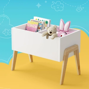 The Keezi Kids Toybox is a sturdy and practical storage solution designed to help keep your child's room neat and organised. Made from high-quality MDF with solid pinewood legs, this toybox offers both durability and stability. The open shelf design makes it easy for kids to store and retrieve their toys, books, or clothes, while the two compartments provide ample space for different items.