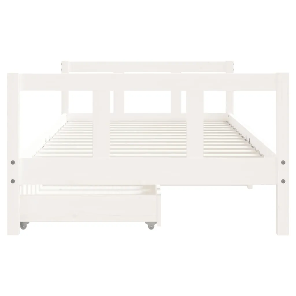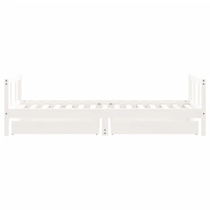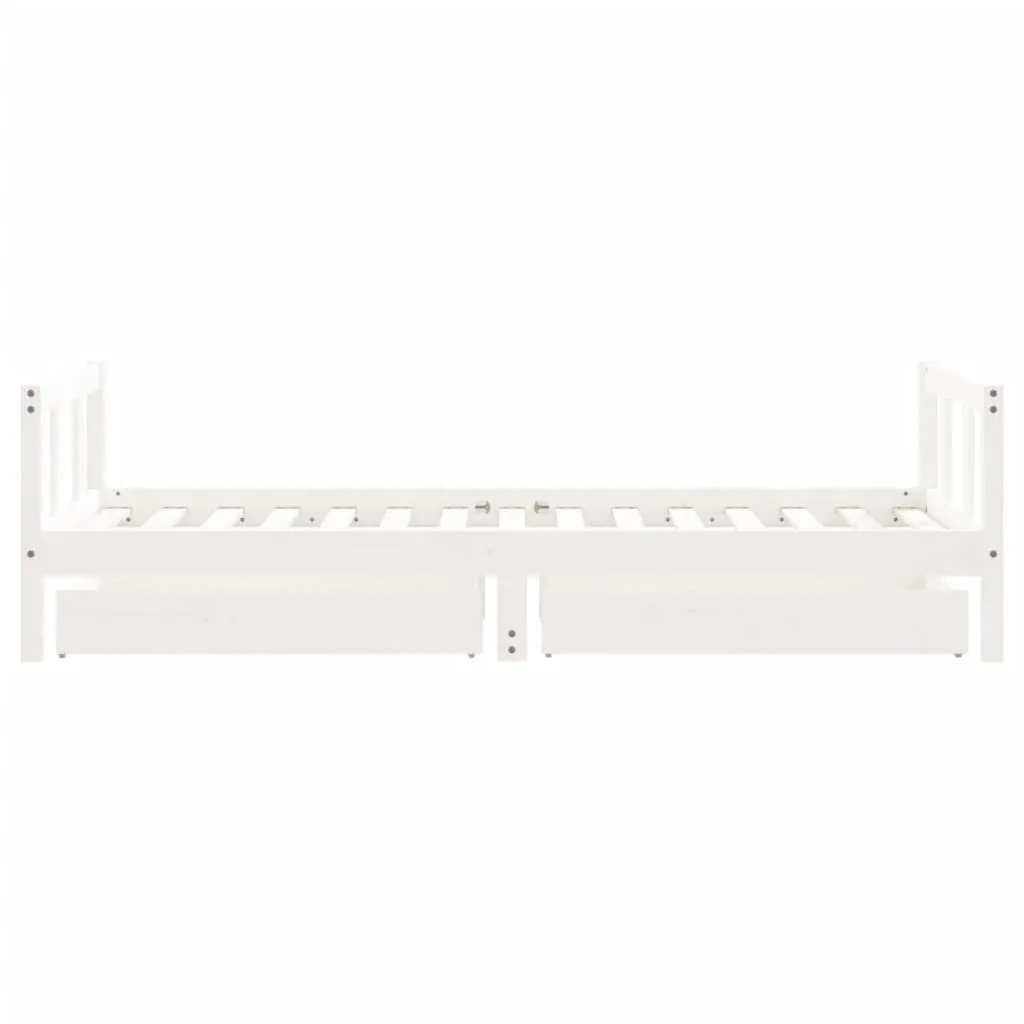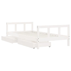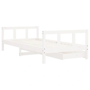 Dream a dream with this wooden kids bed frame. Featuring an elegant and timeless design, it is the perfect choice for your kids! Solid pine wood: The kids bed frame is made from solid pine wood. Solid pine wood is a beautiful natural material. Pine wood has a straight grain, and the knots give the material its signature, rustic look.Sturdy slats: The bed for kids has wooden slats for firm support, ventilation and stability.Storage drawer: The included storage drawers provide ample space for storing small toys, clothing and bedding, keeping the room tidy and clean.Functional headboard and footboard: The headboard and footboard of the toddler bed keep your mattress in place.Considerate design: The height of the kids single bed is designed to be low to the ground, making it easy for your child to get in and out of bed. Good to know:A mattress is not included with this bed. We do offer a various selection of mattresses. You can check our shop for a matching mattress.
