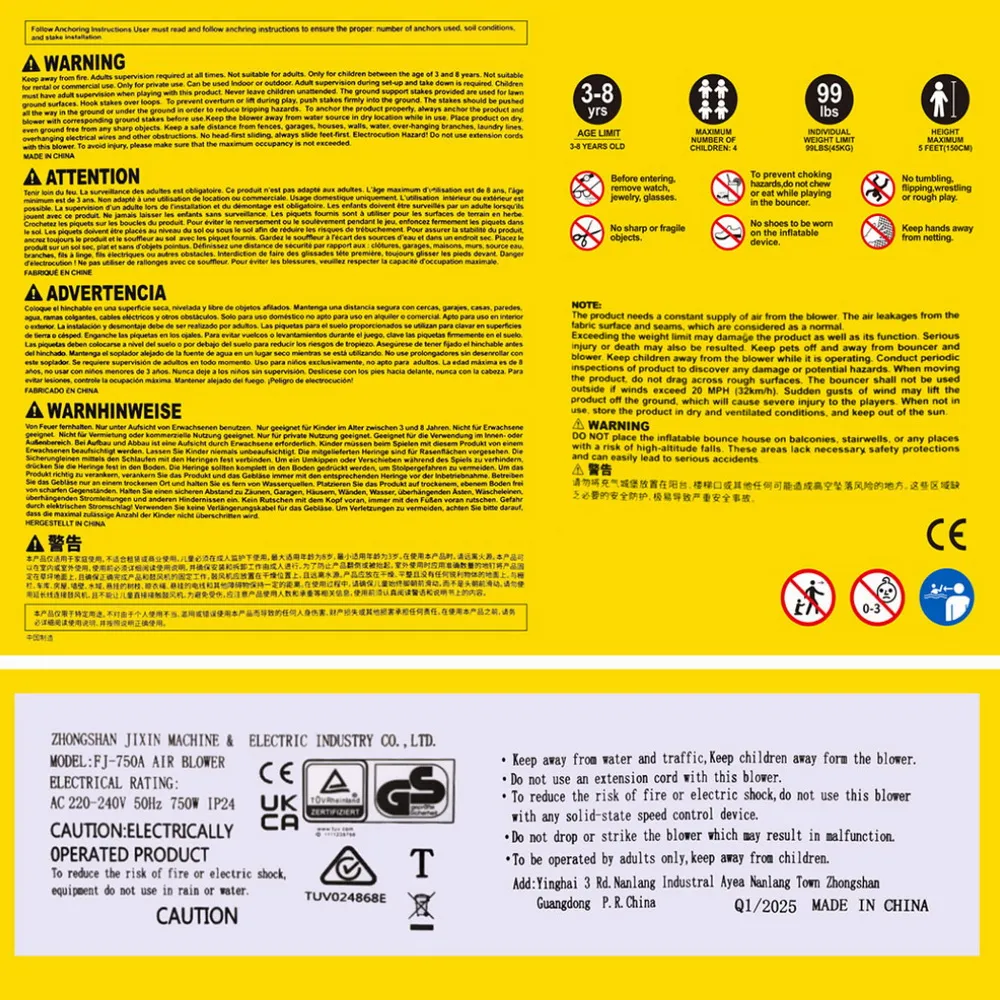 3. The blower should be securely anchored to the ground before use.