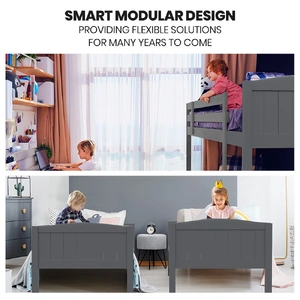 The Kingston Slumber Modular Bunk Bed Frame is ideal for ensuring your loved ones get a good night’s sleep. It is also ideal for sleepovers or use in holiday properties. With its simple modern design and contemporary grey colour scheme, it is sure to look the part in a range of bedroom styles for both boys and girls. Thanks to its smart convertible design it can be split into two individual single bed frames, in order to provide many years of use as your family grows.