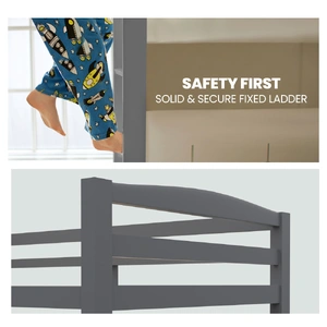 The Kingston Slumber Modular Bunk Bed Frame is ideal for ensuring your loved ones get a good night’s sleep. It is also ideal for sleepovers or use in holiday properties. With its simple modern design and contemporary grey colour scheme, it is sure to look the part in a range of bedroom styles for both boys and girls. Thanks to its smart convertible design it can be split into two individual single bed frames, in order to provide many years of use as your family grows.