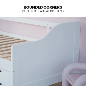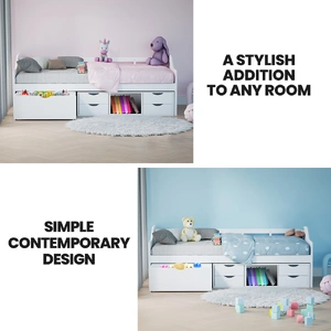 The Kingston Slumber Single Sofa Bed Frame with Storage Drawers is the perfect combination of style, functionality, and fun for your little one's room. This space-saving bed frame offersa perfect place to sleep or relax. With 5 storage drawers there’s plenty of space to store many of their favourite things.