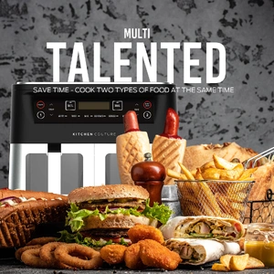 Kitchen Couture's Dual Draw 2 x 5 Litre Stainless Steel Air Fryer is the first of its kind featuring dual cooking zones, so you can cook with different functions at the same time and maximise on your cooking time.
