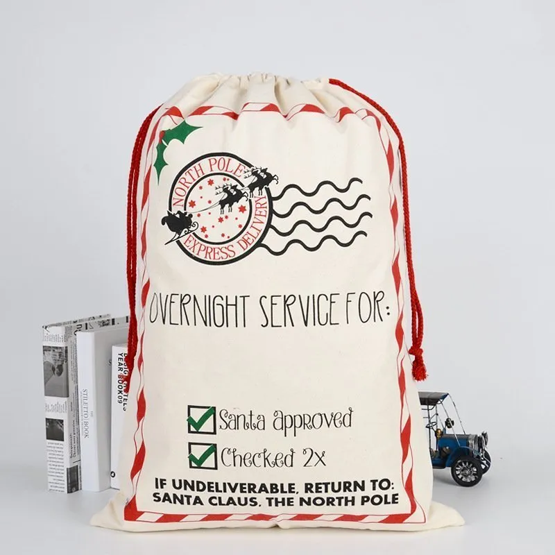 Large Christmas XMAS Hessian Santa Sack Stocking Bag Reindeer Children Gifts Bag, Cream - Overnight Service