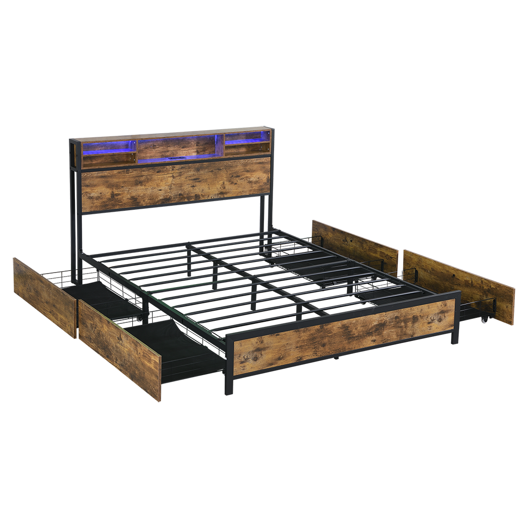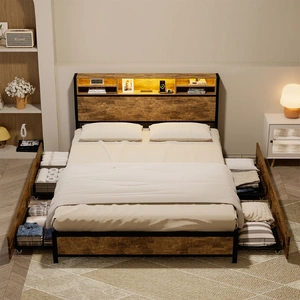 Upgrade your sleep space with this premium bed frame designed for both comfort and convenience. Featuring an integrated LED light strip with adjustable brightness and a large power outlet on the headboard, you can effortlessly create the perfect ambiance while keeping your devices charged. The bed's side boasts four spacious drawers, ideal for storing off-season clothing and everyday essentials, maximising your bedroom's storage without sacrificing style.