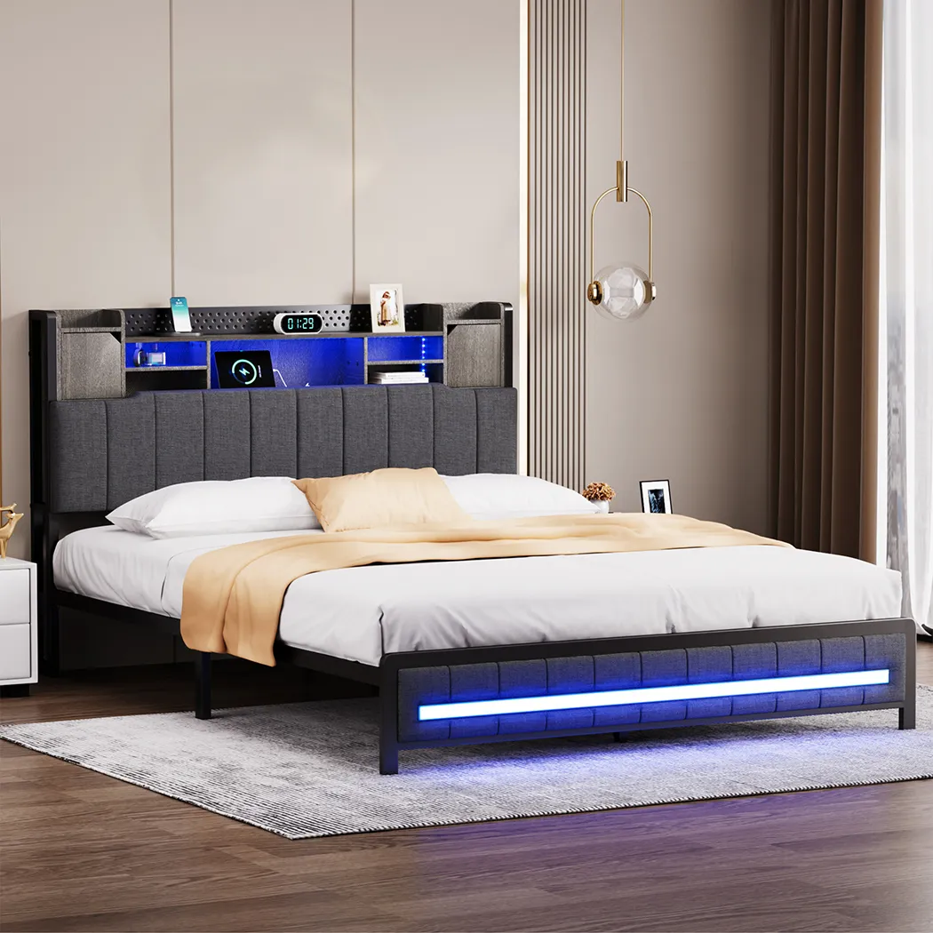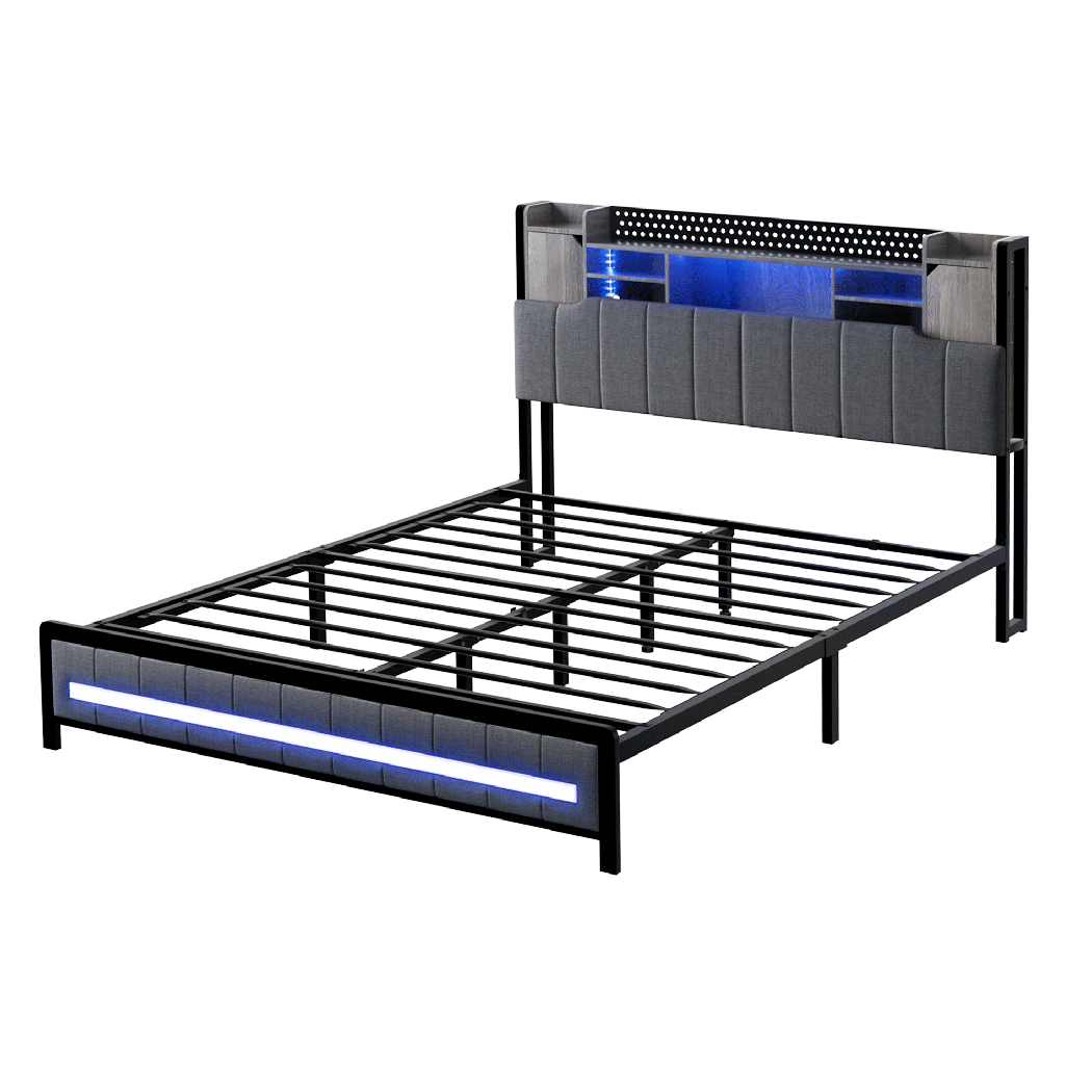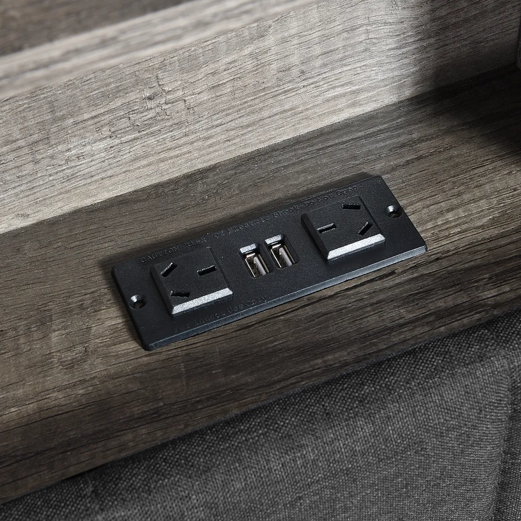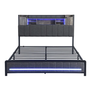 The soft linen upholstered headboard is truly a game-changer for your bedroom. Boasting LED lights, it crafts a warm and inviting atmosphere. With integrated sockets, it enables convenient charging of your devices right by your bedside, guaranteeing that your enjoyment never ceases.