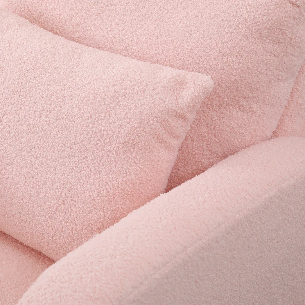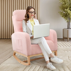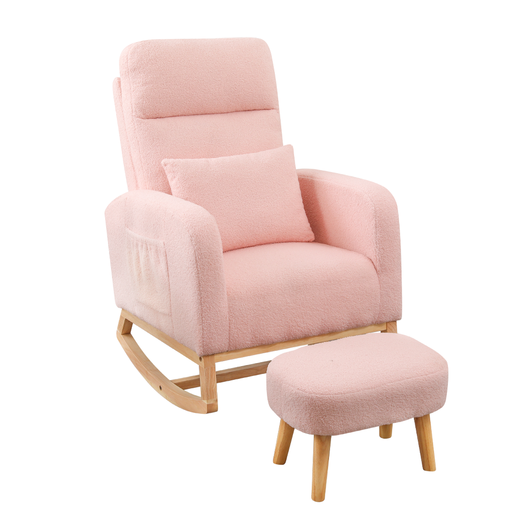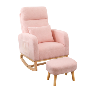 This rocking chair and ottoman set is thoughtfully designed for ultimate relaxation and versatility, making it ideal for both nurseries and living spaces. Upholstered in soft teddy bear plush fabric and filled with high-density foam, the chair provides outstanding comfort and lasting resilience. The ergonomic design, featuring a high backrest and wide armrests, offers excellent body support, making it perfect for adults seeking a cozy spot to unwind.