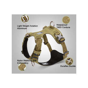 Tactical Military training lightweight harness – Get ready to train your Dog in this super lightweight waterproof harness. Made of Cordura fabric and Microfiber Suede leather lining. High density nylon webbing with embroidery on it which is softer than the normal nylon webbing. Duraflex PC buckle on both sides with a large loading capacity to greatly improve tensile strength. Lightweight Aviation aluminum fittings on the neck strap, a new way to put on and take off. Available in 4 unique colours.
