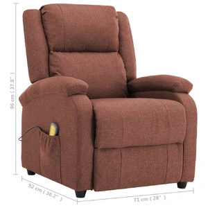 Sit back and drift away in this highly comfortable massage chair! Manual reclining function: The reclining chair is specially designed with 3 reclining positions so that you can adjust the backrest and footrest manually as per your comfort.Vibration function: The featured 6 massage points let you experience a better-targeted massage. Additionally, the included hand control allows you to pick different massage programs. The massage function is powered by the USB connector, but the certified 5V USB power source is not included.Comfortable seat experience: The thickly padded seat, backrest, and wide armrests covered in fabric provide a cosy and warm sensation, making you feel embraced while seated. The fabric features a simple and clean look, and is breathable and durable.Solid and stable frame: The frame made of wood and metal provides a strong structure and stability. This reclining armchair is comfortable and durable.