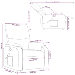 Sit back and drift away in this highly comfortable massage recliner chair! Manual reclining function: This reclining chair has a button on the right side. You can manually adjust the footrest and the backrest to any position as per your comfort with a simple press of the button. This feature allows for a maximum tilt of 135 degrees. Additionally, the backrest can go quickly back to the original place with an easy pull of the button.Vibration function: The featured 6 massage points let you experience a better-targeted massage. Additionally, the included hand control allows you to pick different massage programs. The massage function is powered by the USB connector, but the certified 5V USB power source is not included.Comfortable seat experience: The thickly padded seat, backrest, and wide armrests covered in faux leather provide a cosy sensation, making you feel embraced while seated. The faux leather is a highly durable material. It is resistant to stain, making it easy to clean with a damp cloth. The smooth surface also gives a luxurious look and the beauty of real leather.Convenient side pocket: This armchair has a side pocket for your remote control or keeping your essential items within easy reach.Solid and stable frame: The frame made of wood and metal provides a strong structure and stability. This reclining armchair is comfortable and durable.
