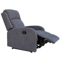 This trendy manual recliner chair in light grey is packed with great features to offer maximum relaxation. It provides your living space or theatre room with real beauty. Designed in the modern style, it is an embodiment of amazing craftsmanship, which is visible in its plush cushioning for head and lumbar support. The manual recliner mechanism with button allows 2 relaxed positions with footrest extension. The recliner chair, with 100% polyester upholstery, has also a streamlined design, offering unrivalled luxury. With a manual recliner mechanism and a maximum weight limit of 120 kg, the recliner ensures total relaxation of the body. Its seat and back cushions are made of high-density foam, featuring S-spring and pocket springs for comfortable seating support. The entire structural frame of the recliner is composed of sustainably harvested solid wood and plywood, supported by a metal frame. The frame has a five-year warranty; the foam and springs have a three-year warranty; the fabric and stitching have a one-year warranty; the recliner mechanism and all other parts have a one-year warranty.