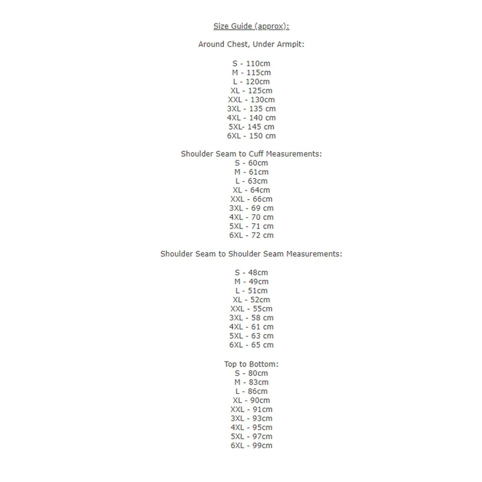 - Available sizes: Small --> 6XL!