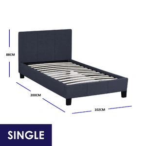 Milano Sienna Luxury Bed Frame Base And Headboard Solid Wood Padded Linen Fabric - Single - Charcoal