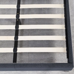 This bed frame and the complementary headboard is encased in a high-quality fabric upholstery with clean and smooth edges that complement the modern design and adds another layer of comfort to the bedroom experience.