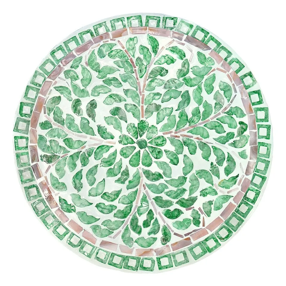 Our hand-crafted Mother of Pearl furniture is expertly crafted, imparting each piece with a unique character of its own. Such pieces may bear small markings, smudges, glue spots, and other subtle details all of which contribute to its one-of-a-kind look. Patterns may differ from those shown in its original photos. Note that these details are not faults and are instead part of the charm of such hand-crafted items. To maintain these pieces, they should not be used outdoors, nor should cleaning chemicals be used. Instead, use a lint-free cloth, and also make sure not to place these pieces near heat or sunlight, as this may cause fading.