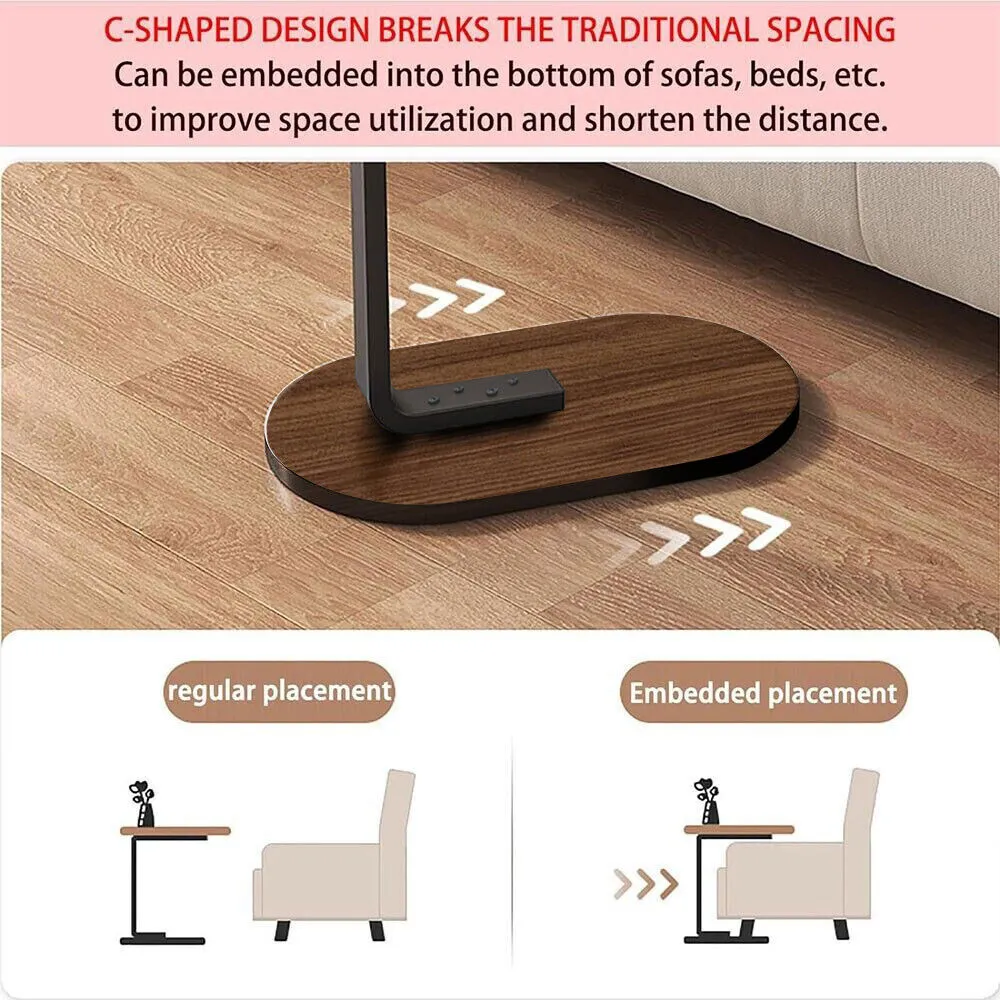 - Space-Efficient Design: The C-shaped structure of our table is crafted to slide easily under your couch or bed, providing a sturdy, flush fit that saves space and keeps essentials within arm's reach, perfect for small living areas.
