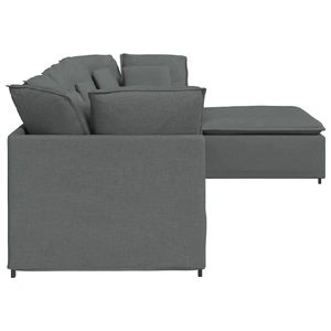 Elevate your living space with the modular sofa, combining elegant design with exceptional comfort. Mix and match to create the perfect seating arrangement for your home. Soft and durable seating: The fabric upholstery and foam filling provide softness and breathability, offering long-lasting comfort and durability, ensuring it withstands daily wear while retaining its elegant look.Stable and robust frame: With a strong metal frame and sturdy wooden armrests, the sofa guarantees exceptional stability and is built to endure everyday use.Extra comfort: Enhanced with supportive armrests and textilene seating, the sofa offers unmatched comfort for relaxation, featuring cushions that contour your body for ultimate lounging pleasure.Modular design: The sofa's modular construction allows for effortless reconfiguration to suit any room layout. You can position the footstool module on either the right or left side, adapting to your usage needs and personal preferences. This flexible assembly ensures a versatile seating solution perfectly fitting your space and lifestyle.Generous seating: Featuring four modular sections, the sofa provides ample seat space for comfortable lounging, making it ideal for family gatherings or entertaining friends. Whether used in a cosy living room or an open-plan space, its spacious design ensures everyone can relax together.