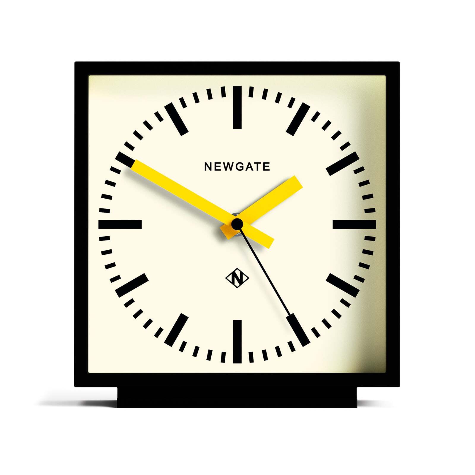 Newgate Amp Mantel Clock Black With Yellow Hands Modern Mantel Clock | Square Black and Cream | Silent 'No Tick'