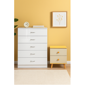 The NNECN White 5-Drawer Chest with Bedside Table is designed to help you maintain a clean, organized, and stylish home. With five deep drawers gliding smoothly on durable metal runners, this chest offers generous storage for clothes, linens, or household items. Its clean white finish and minimalist design allow it to seamlessly fit into any bedroom, hallway, or living area. Built with impact-resistant edging and anti-tip hardware, it prioritizes both safety and longevity.