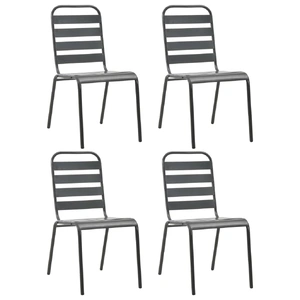 This stylish set of 4 outdoor chairs add a touch of contemporary style to your patio, garden or dining room. When you invite guests over, they will certainly marvel at these modern chairs. The high-quality garden chairs are made of sturdy steel that has been e-coated and then powder-coated. The e-coating (electrophoretic coating) is applied to make chairs resistant to rust, weather, and long-term outdoor use, while the powder coating helps to enhance the durability. The dining chairs can be stacked to save space when not in use.