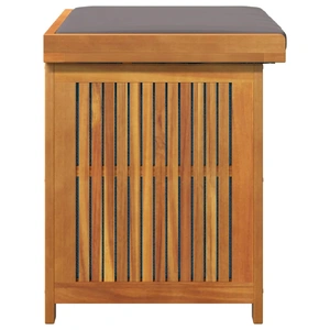 This cushion box is perfect for keeping your outdoor furniture cushions, gardening supplies, pool towels, and other items organised and easily accessible. Stable and long-lasting frame: Solid acacia wood is known for its strength and durability. Its diverse colours and unique grain patterns give it an attractive appearance. With good stability and resistance to weathering, it is ideal for crafting indoor and outdoor furniture.Storage function: The cushion container features storage space underneath, equipped with a water-resistant bag for storing cushions, toys, and other items. The inner bag can be securely attached to the seat with hook-and-loop fasteners, ensuring stability and preventing movement.Great ventilation: The garden cushion box is designed with open slats which guarantee optimal ventilation.Practical lid: The outdoor boxes come with lids, which prevent items from getting dusty and also add safety.Stylish design: The wooden texture design gives the garden storage box an understated yet timeless feel, which fits well in any decor setting. Good to know:To make sure your outdoor furniture stays beautiful, we recommend protecting it with a waterproof cover.