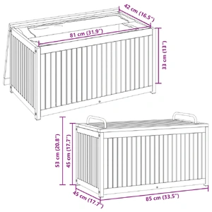 This wooden cushion box is perfect for storing your cushions, pillows, blankets, toys, and other items in the garden or patio. Stable and long-lasting frame: Solid acacia wood is known for its strength and durability. Its diverse colours and unique grain patterns give it an attractive appearance. With good stability and resistance to weathering, it is ideal for crafting indoor and outdoor furniture.Ample storage space: The storage space makes it easy to keep things organised. You can store cushions, mats, toys and other items within reach and neatly organised.Practical handle: The powder-coated steel handle is strong, stable, durable, and resistant to corrosion and harsh weather, ensuring long-lasting performance. Good to know:To make sure your outdoor furniture stays beautiful, we recommend protecting it with a waterproof cover.