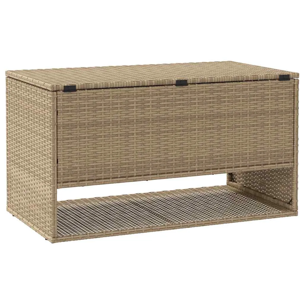 This cushion box is perfect for keeping your outdoor furniture cushions, gardening supplies, pool towels, and other items organised and easily accessible. Durable material: PE rattan, also known as poly rattan, is a strong, low-maintenance synthetic material that looks like natural rattan. It's lightweight, easy to clean, and commonly used for outdoor furniture due to its durability and weather-resistant properties.Robust and stable frame: The powder-coated steel frame is strong, stable, durable, and resistant to corrosion and harsh weather, ensuring long-lasting performance.Storage function: The garden furniture features storage space underneath, equipped with a water-resistant bag for storing cushions, toys, and other items. The inner bag can be securely attached to the seat with hook-and-loop fasteners, ensuring stability and preventing movement.Safe and easy to open and close: The gas spring makes it easy to open the lid and keeps it from slamming shut or trapping fingers.Practical lid: The outdoor boxes come with lids, which prevent items from getting dusty and also add safety.Versatile use: Keep it tidy by storing away your cushions, pillows, blankets, and other items you'd like to keep out of sight. This storage box can also be used as a toolbox thanks to its solid construction. Good to know:To make sure your outdoor furniture stays beautiful, we recommend protecting it with a waterproof cover.This cushion box can not be used as a seat.