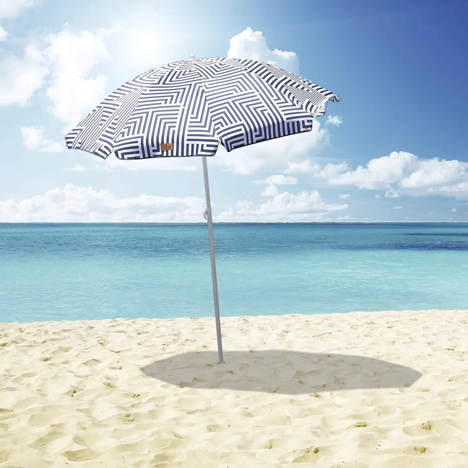 With a fun and colourful navy Makena design this umbrella instantly makes any outdoor activity feel like a party, with its fun and colorful design. Size: 100 cm, 3.2 feet folded beach umbrella with carry bag. ;