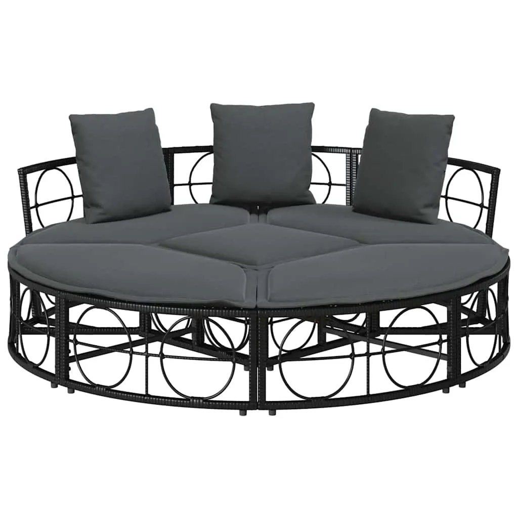 This comfortable outdoor lounge bed with cushions is a perfect combination of style and functionality. Durable material: PE rattan, also known as poly rattan, is a strong, low-maintenance synthetic material that looks like natural rattan. It's lightweight, easy to clean, and commonly used for outdoor furniture due to its durability and weather-resistant properties.Modular design: This modular garden lounge bed can be arranged as a round sun island or separated into a conversation set with a table and multiple seats, providing flexible seating for you and your friends to relax.Comfortable seat experience: This outdoor furniture, complete with thickly padded cushions, offers a comfortable seating experience.Removable and washable cover: These seat cushions and pillows feature removable covers for easy washing and maintenance. Good to know:To make sure your outdoor furniture stays beautiful, we recommend protecting it with a waterproof cover.