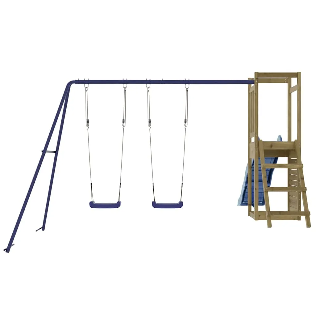 Do you want to give your children the freedom to play at home? This wooden outdoor playset transforms your backyard into a playground for imaginative adventures! Durable material: This garden climbing frame is made of vacuum pressure impregnated pinewood. Solid pine wood is a beautiful natural material. Pine wood has a straight grain, and the knots give the material its signature, rustic look. Impregnation is a preservation process that is carried out by using autoclaves. The pressure-treatment increases resistance to decay and weather.Sturdy and stable frame: The wooden frame of the garden play frame ensures sturdiness and stability. In addition, the "A" shaped legs of the children's swing allow for balance.Multi-activity centres: The climbing frame features a 90 cm height platform and stands out with its wave slide, a rockwall, a double swing set as well as a sandpit. Your little ones can also invite their friends to join the fun.Thoughtful design: The surrounding wooden railings are designed to ensure the safety of children during their happy play.Endless fun: This fun-filled wooden outdoor playhouse is the perfect way for your children and their friends to enjoy entertaining time, have more interactive time and make memories for you and your children! Warning:Only for domestic useOutdoor use Not suitable for children under 3 years Recommend user age: 3-8 years old Good to know:To make assembly as easy as possible, each product is delivered with a manual.