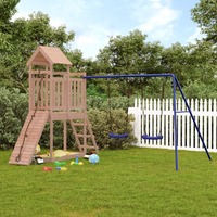 Do you want to give your children the freedom to play at home? This wooden outdoor playset transforms your backyard into a playground for imaginative adventures! Durable material: This climbing frame with slide is made of solid pine wood. Solid pine wood is a beautiful natural material. Pine wood has a straight grain, and the knots give the material its signature, rustic look. Sturdy and stable frame: The wooden frame of the garden climbing frame ensures sturdiness and stability. In addition, the "A" shaped legs of the children's swing allow for balance.Multi-activity centres: The climbing frame features a 90 cm height platform and stands out with its climbing wall with a rope, a double swing set, a ladder as well as a sandpit. Your little ones can also invite their friends to join the fun. Thoughtful design: The surrounding wooden railings are designed to ensure the safety of children during their happy play. Also, the wooden roof provides shade for your children on hot summer days. Endless fun: This fun-filled wooden outdoor playhouse is the perfect way for your children and their friends to enjoy entertainment, have more interactive time and make memories for you and your children! Warning:Only for domestic useOutdoor use Not suitable for children under 3 years Recommend user age: 3-8 years old Maximum per user weight: 45 kg Note:The product shall be anchored in order to reduce tipping hazards. The anchors are sold separately. Good to know:To make assembly as easy as possible, each product is delivered with a manual.