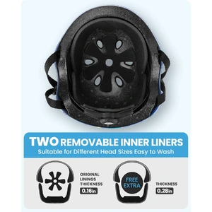 Kids skateboard helmet with two removable liners for different head sizes and easy to wash the sweat away.