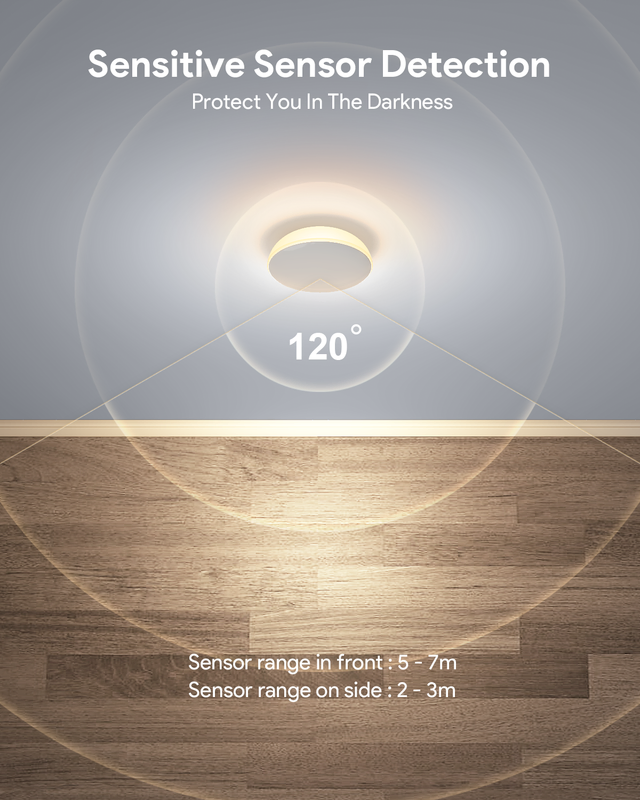 - Ultra-Sensitive Motion Detection: Instantly illuminates when darkness falls, protecting you with: 57 m forward detection range ,23 m wide-angle side coverage Light stays on for 20 seconds after movement, guiding you safely without abrupt darkness.