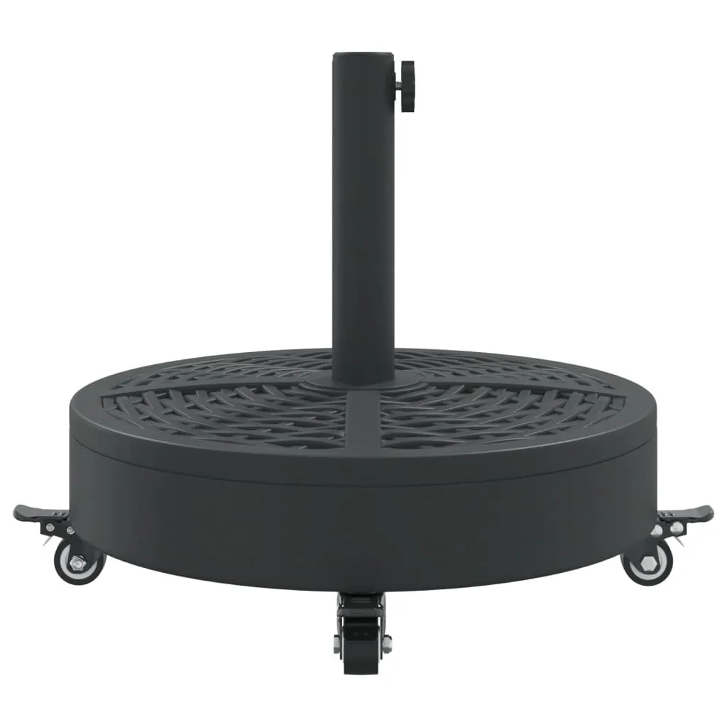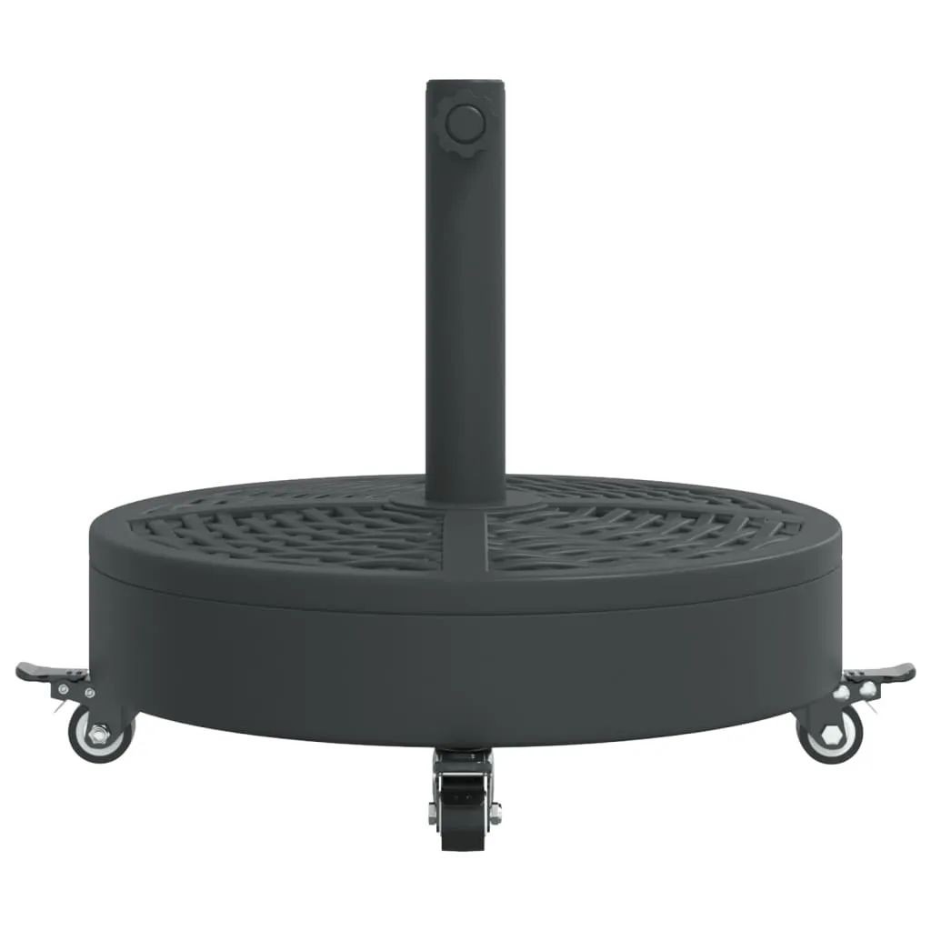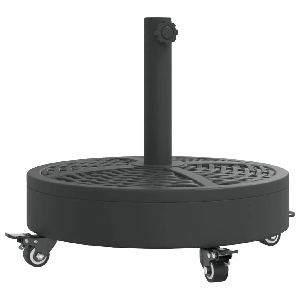 This parasol base offers a sturdy and reliable foundation to ensure your umbrella remains stable and upright. Strong and stable base: This parasol base features a durable plastic shell filled with concrete, ensuring exceptional stability to keep your parasol securely in place and prevent it from tipping over, even in windy conditions.Easy movement: Equipped with lockable castors, this parasol base allows you to effortlessly relocate your parasol to any desired spot and securely lock it in place for added control and safety.Easy to install: This umbrella base has a tightening knob for securing your umbrella to the base more firmly.Compatible with multiple pole sizes: This umbrella base comes with 2 pole adaptors, allowing it to fit umbrella poles with a diameter of 38 and 48 mm.Beautiful rattan pattern: Designed with rattan patterns, this parasol holder brings a touch of timeless elegance to your outdoor area.