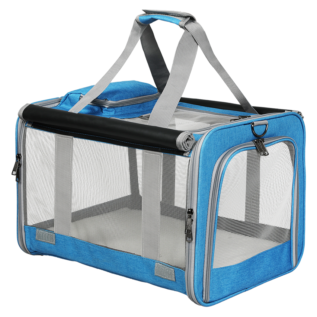 The four-sided mesh design with a roll-up curtain offers ventilation and a view for your pet, reducing their anxiety on outings. Foldable and just 6cm high when folded, it's easy to store and transport, fitting neatly in a closet, under a bed, or in the trunk of your car.